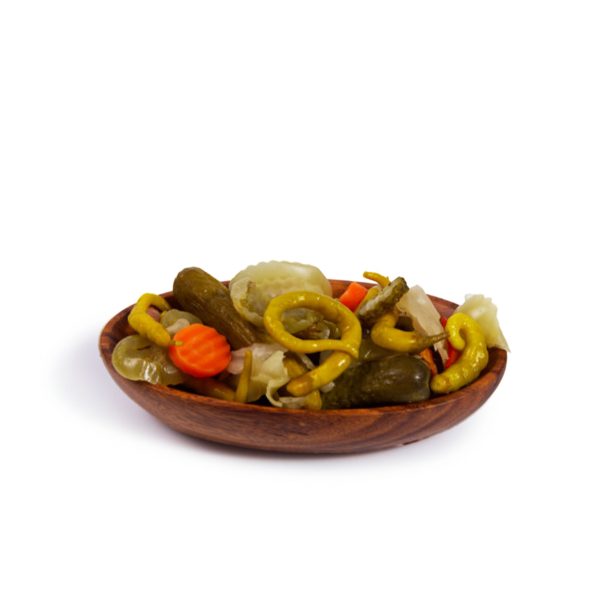 Çubuk, erik, bamya turşu, ızgara zeytin, humus ile